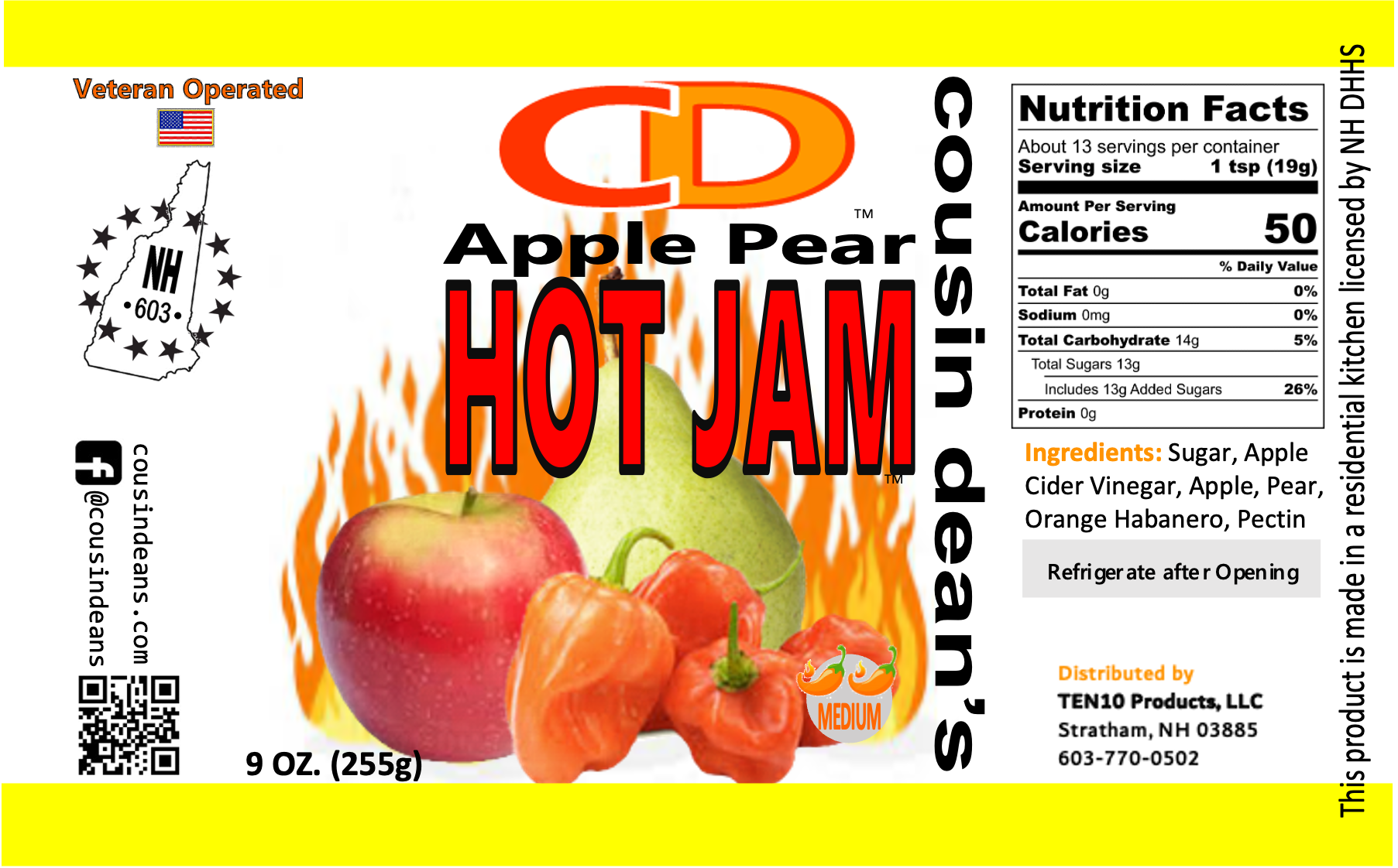 Ingredients: Sugar, Apple Cider Vinegar, Orange Habanero, Apple, Pear, Pectin Powder